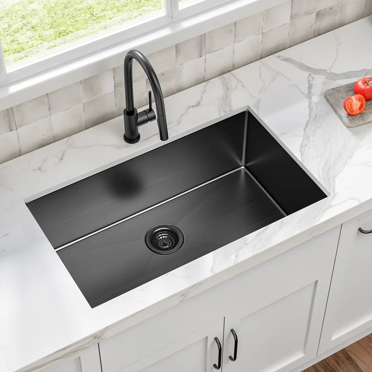 Undermount, top-mount, and vessel bathroom sinks in coordinated finishes. Kitchen and bathroom sinks on one PO without splitting the order. ADA bathroom sinks share the same product line — no separate vendor.