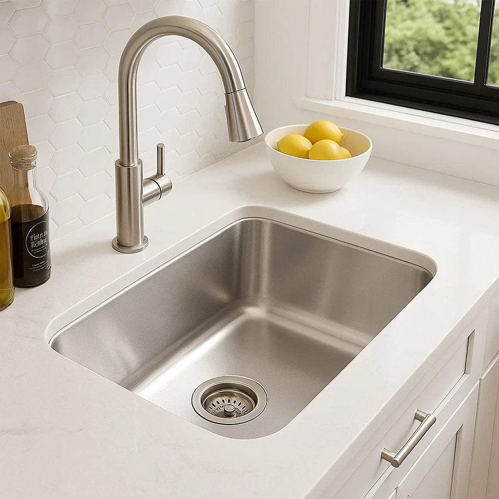 Polished chrome finish delivers a clean, reflective look that suits any kitchen