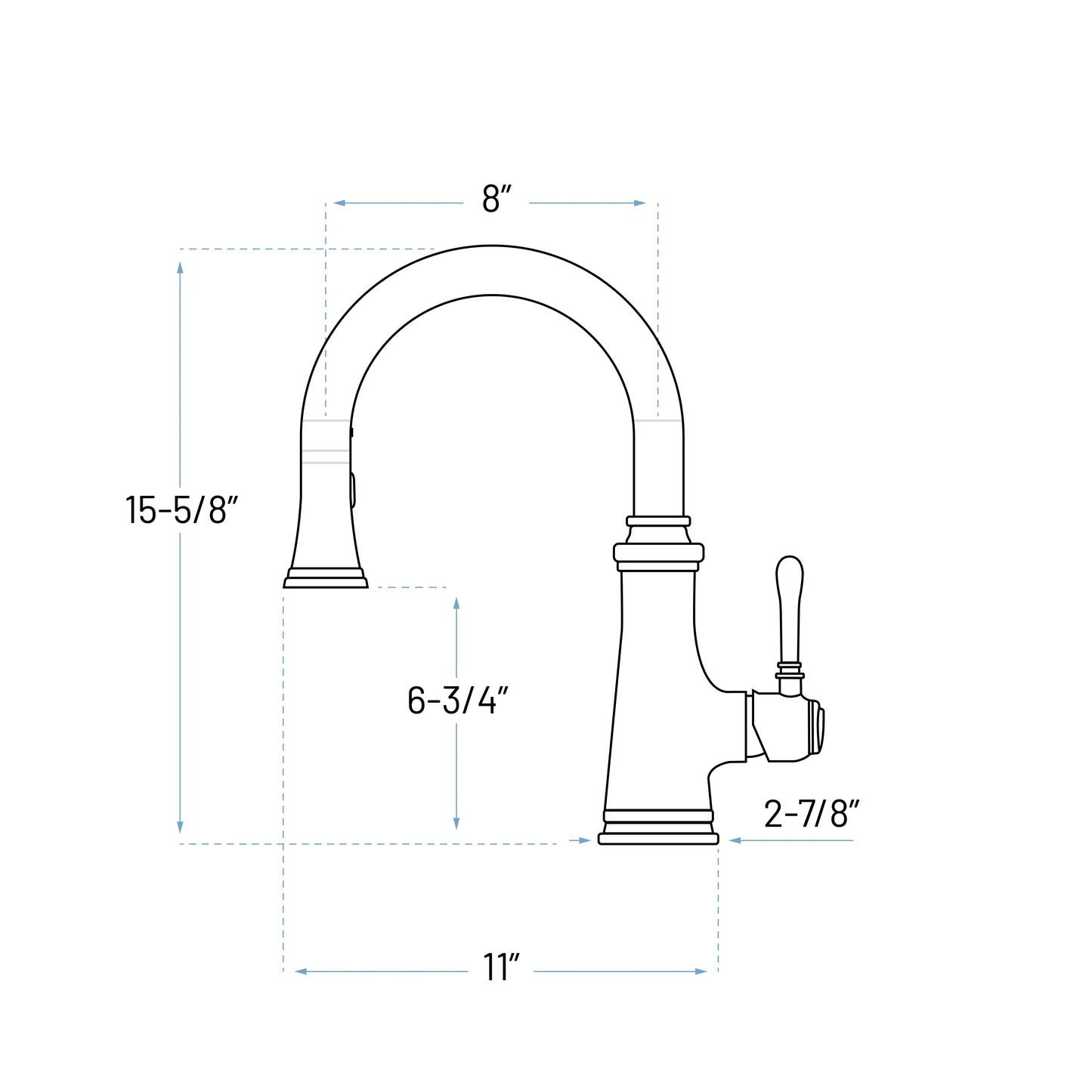 Blending timeless elegance with reliable strength, the Allora USA Chrome Pull-Down Kitchen Faucet pairs vintage-inspired design with long-lasting performance. Constructed with a solid brass body and finished in brilliant chrome, this faucet is built for daily use in busy kitchens while retaining its classic appeal. The high arc gooseneck spout offers a generous 15-5/8" height and a full 360° swivel for easy access to large pots, trays, and every corner of the sink.