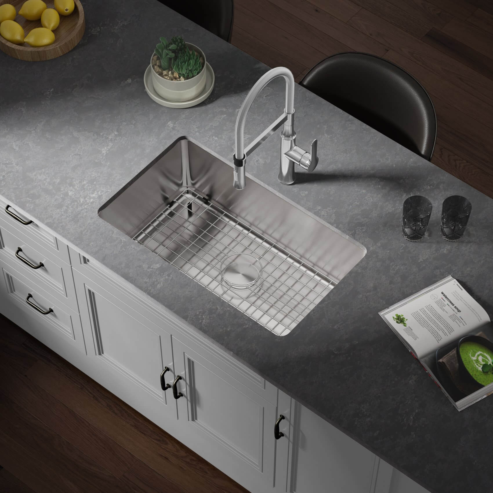 Its ergonomic spray head is supported by a durable spring system and docks securely with integrated magnetic docking technology. The spray head easily switches between stream and spray functions, while the high arc design and full 360° swivel provide total access to your sink—ideal for large cookware and high-demand kitchen tasks.