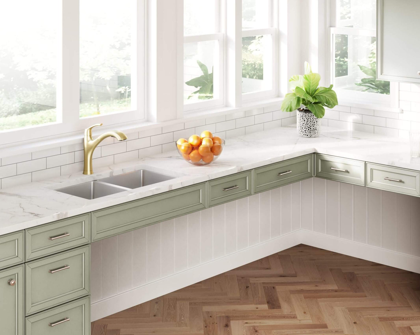 Seamless undermount installation creates a sleek transition from countertop to sink