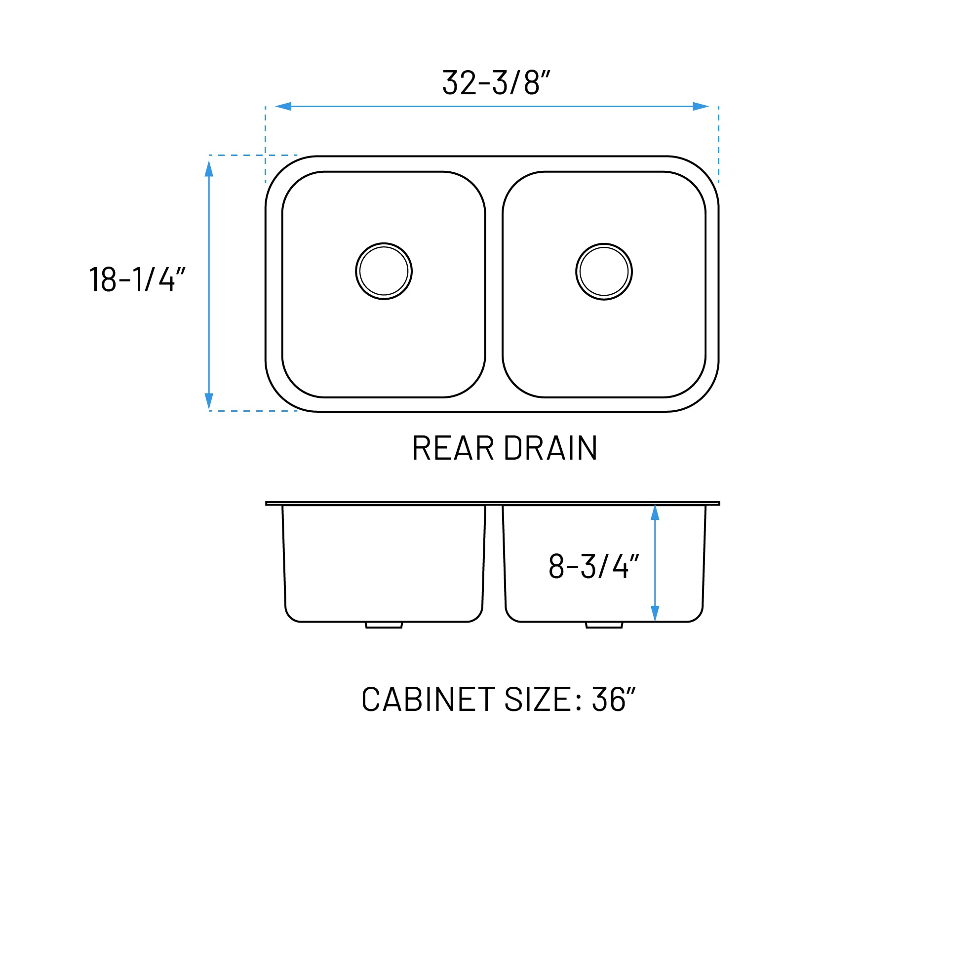 32-inch overall width fits standard 36-inch base cabinets while offering generous space in each basin